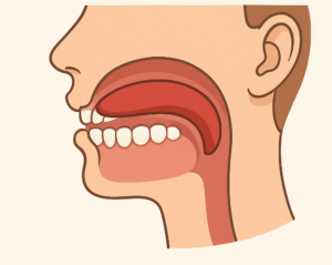 舌がこの場所に軽く触れている状態が理想で、歯並びの安定、顎の発育、鼻呼吸の維持に欠かせません。(絶対に前歯には触れません)