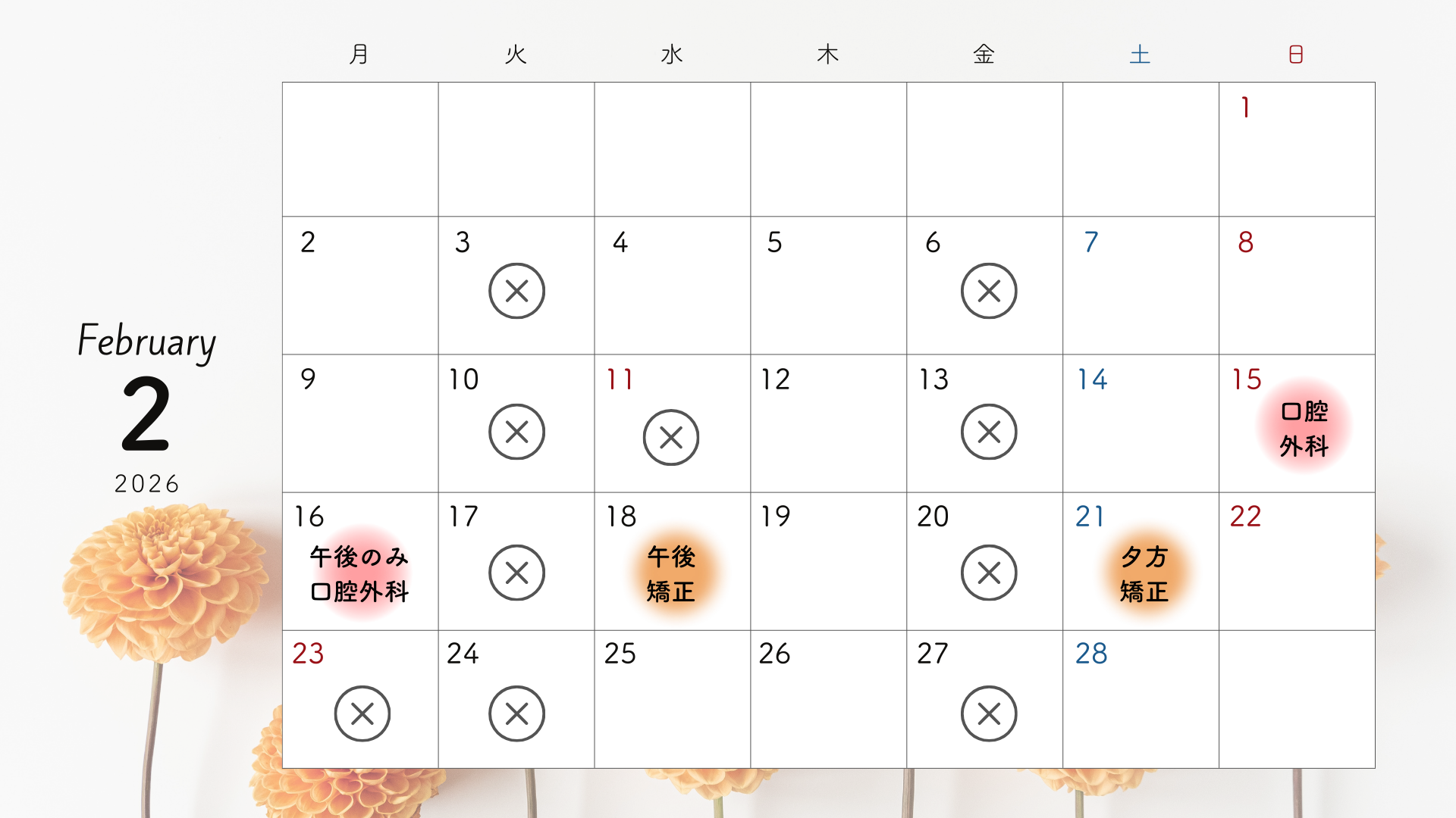 11月以降の口腔外科手術日について